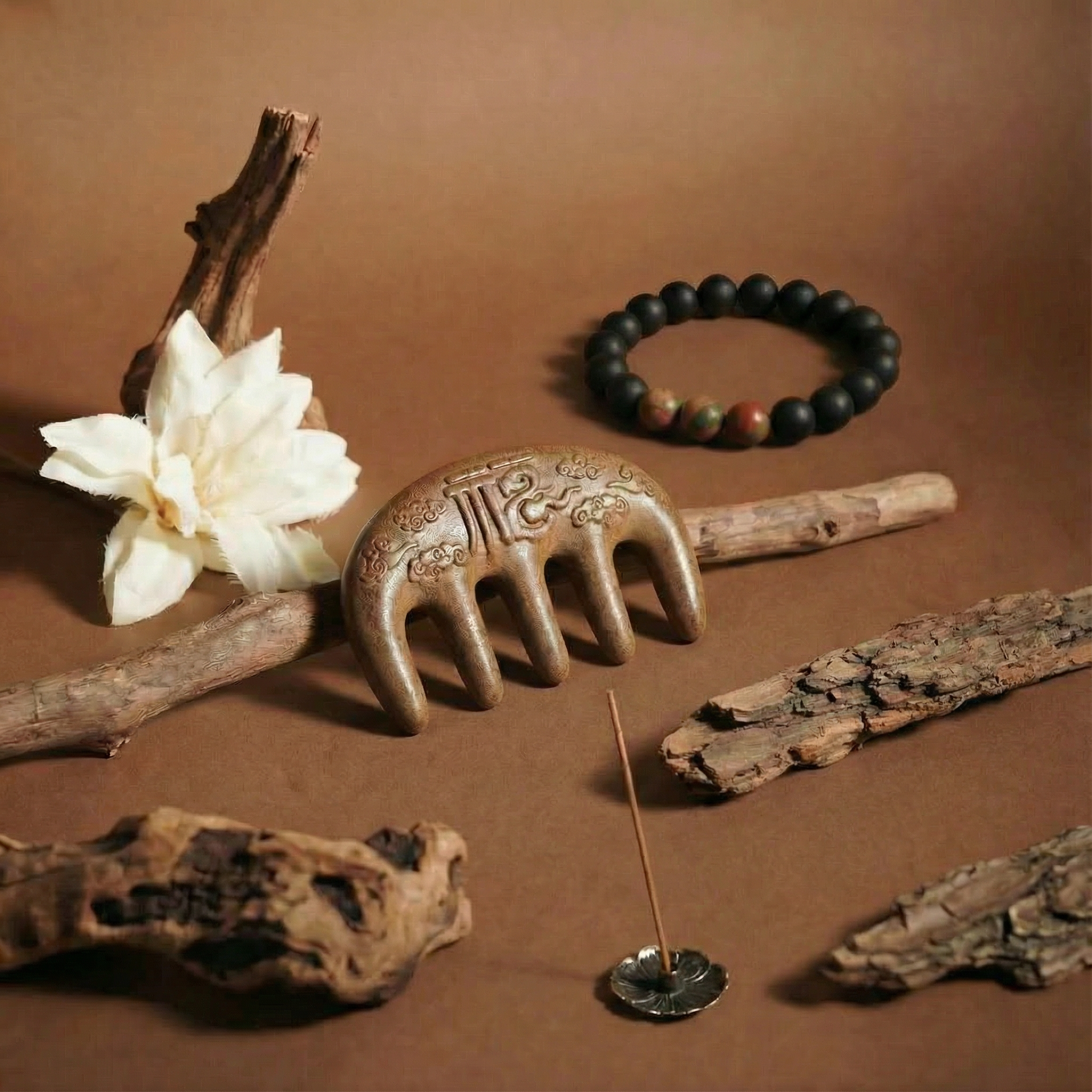 Incense prepares the environment Bracelet anchors calm within the body Comb integrates healing into daily life
